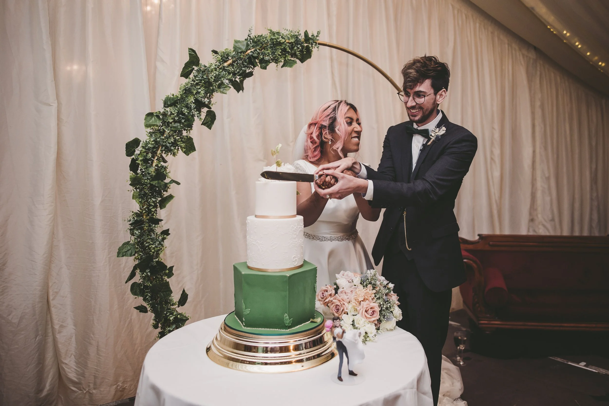 There’s so much you can customise when it comes to your wedding cake 🎂 Our cake, made by the wonderful Kerry Ann’s Cake Boutique, was simple and elegant, in white, green and gold, with floral piping and subtle decorations. We also had a gorgeously cute cake topper which was the perfect touch for us.