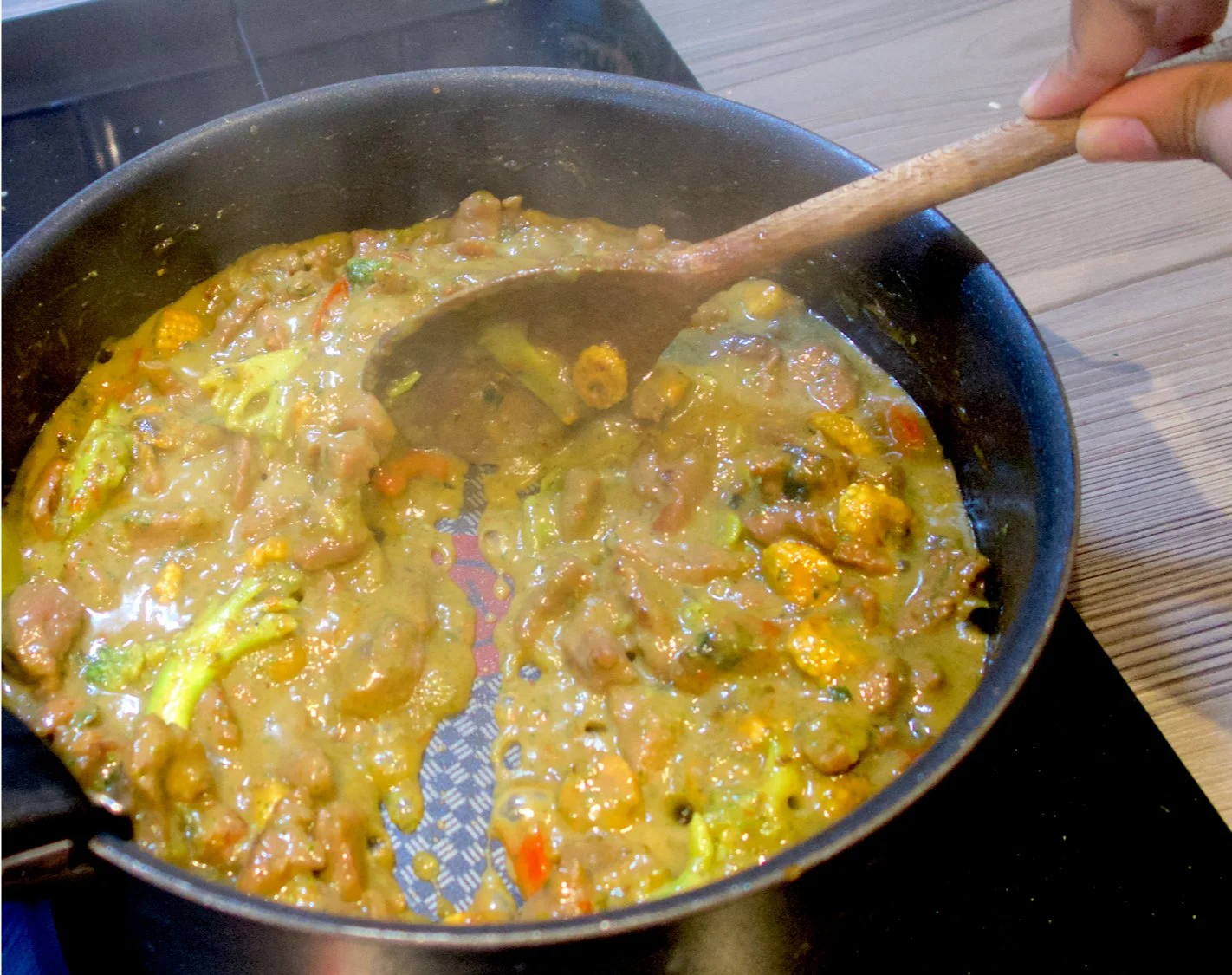 3b (optional) : If you like crunchy veg, you should remove it from the pan, and set this to one side. If you like soft veg, or have picky eater that don't like noticable veggies, skip this step.