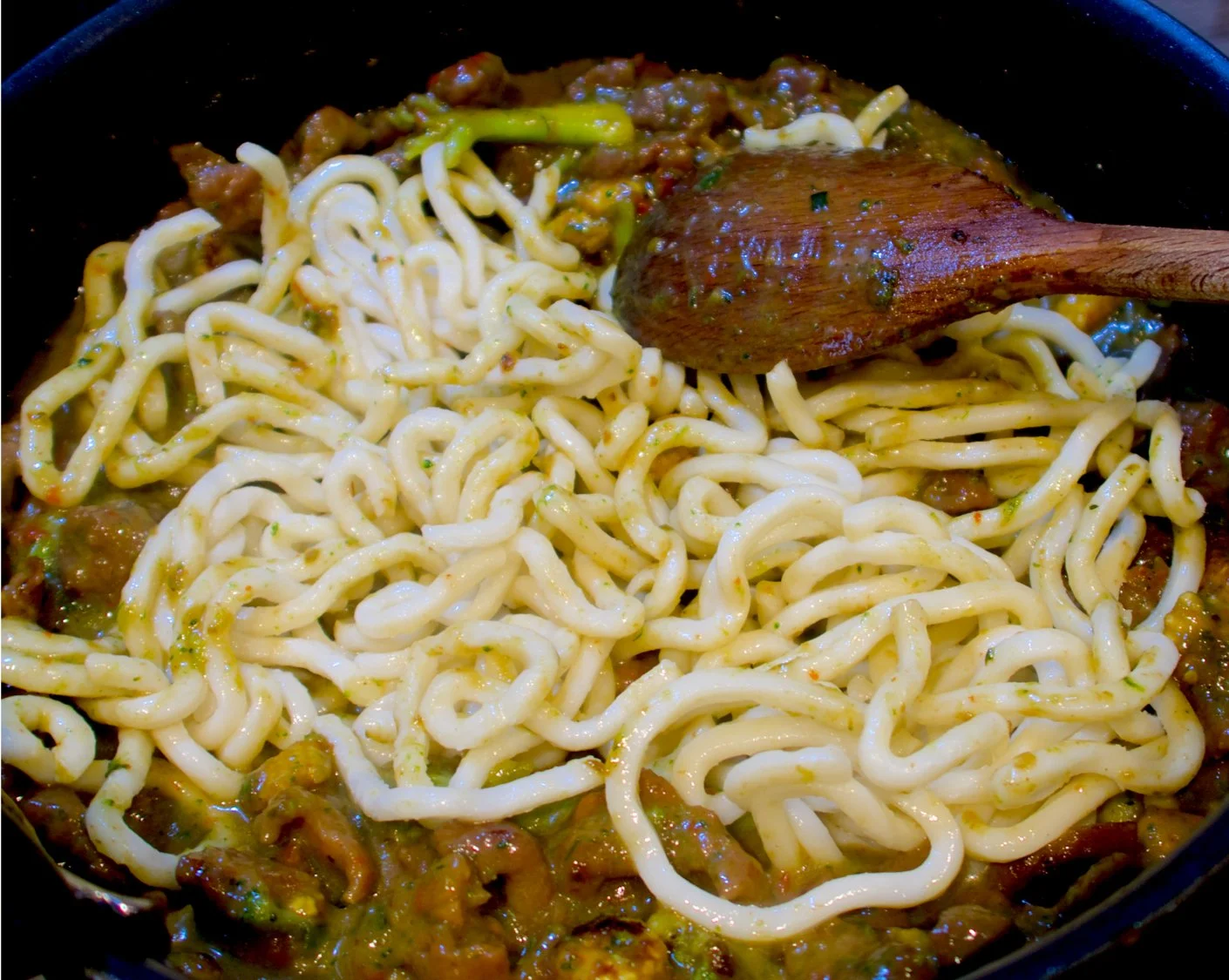 After a quick online search, it turns out that Chinese cuisine uses a process called 'velveting' their meat to make it so soft. I've used it in this recipe, and it means that you can cook cheaper cuts of meat quite quickly, and get beautifully soft results every time! So without further ado, here's my recipe for coconut beef udon noodles.